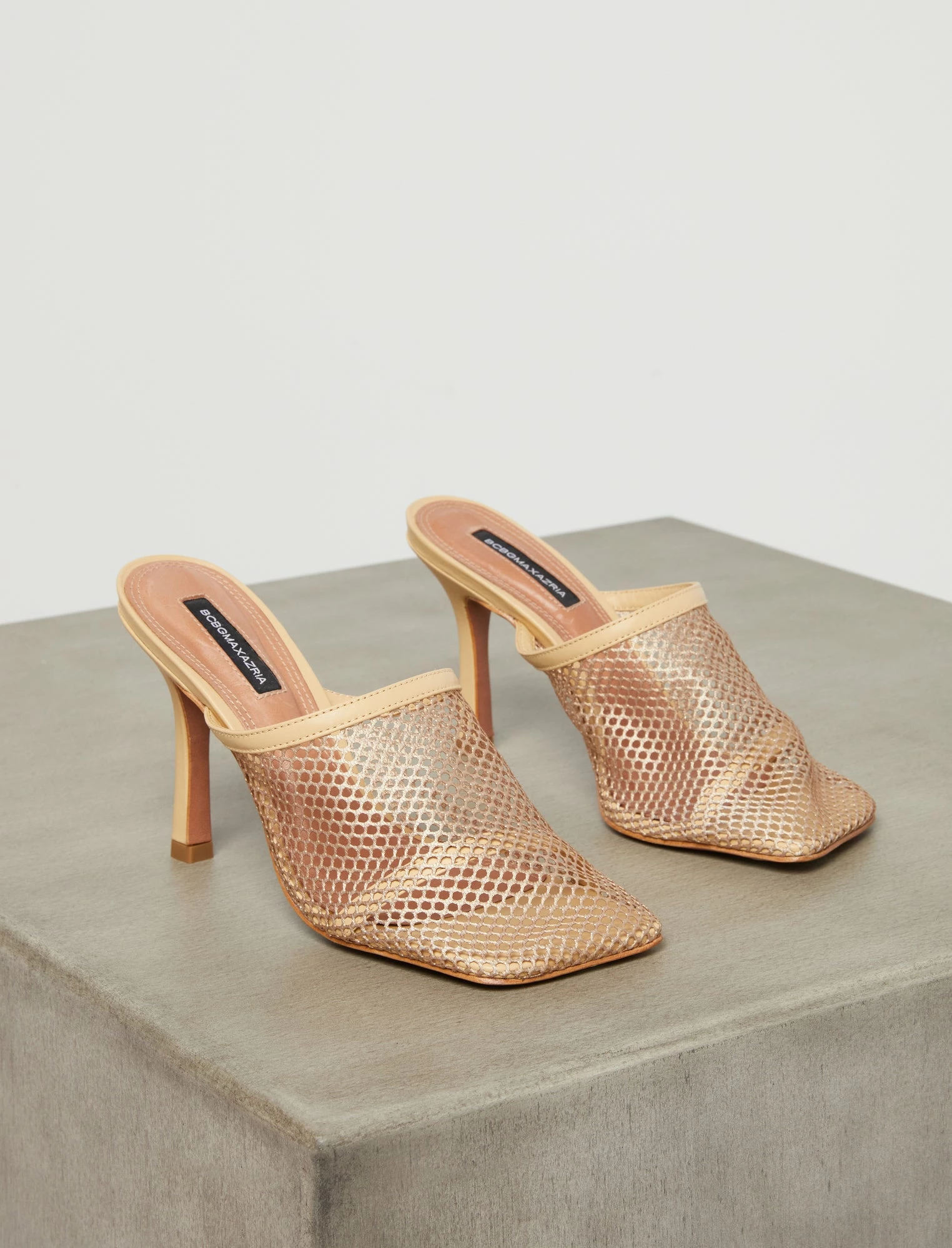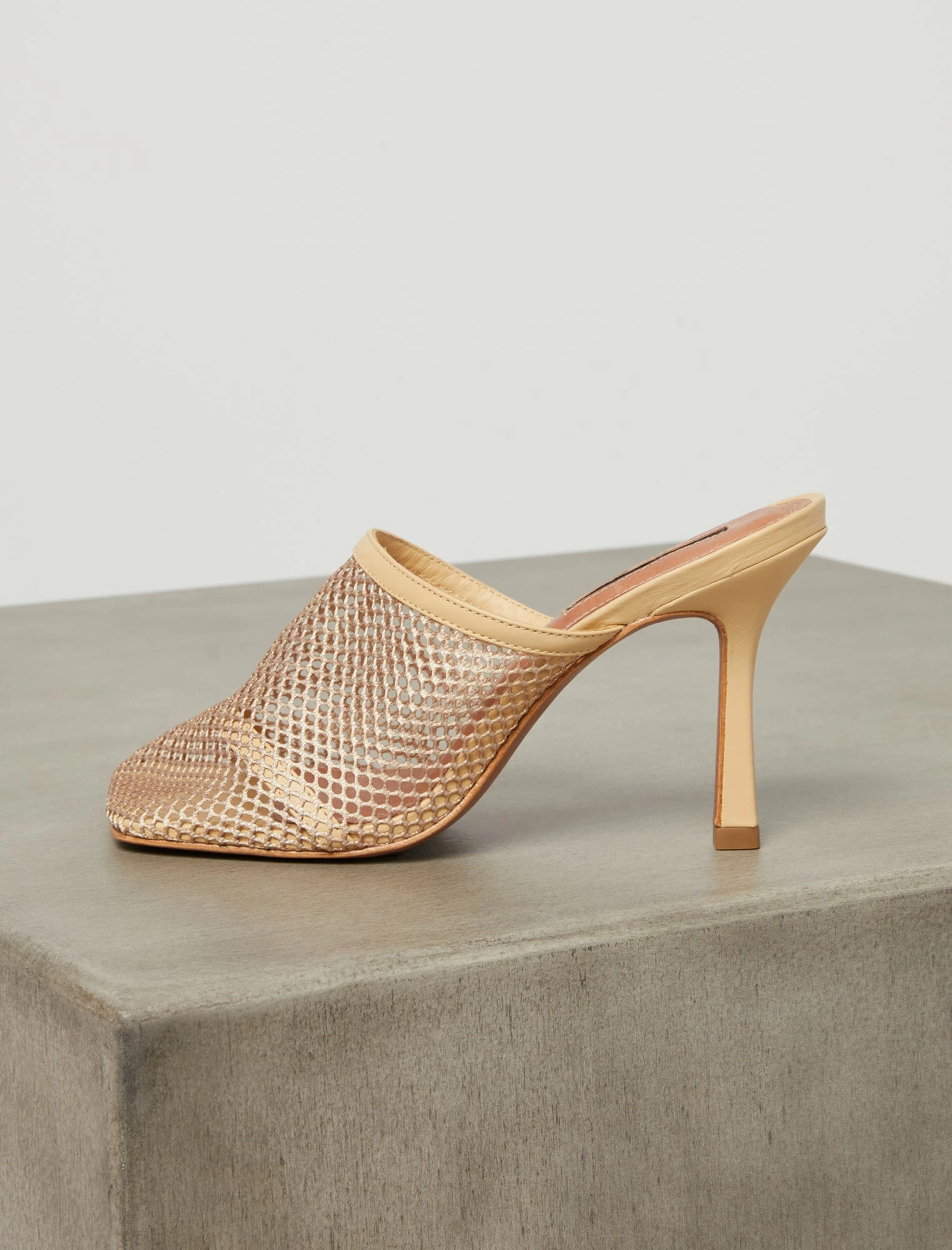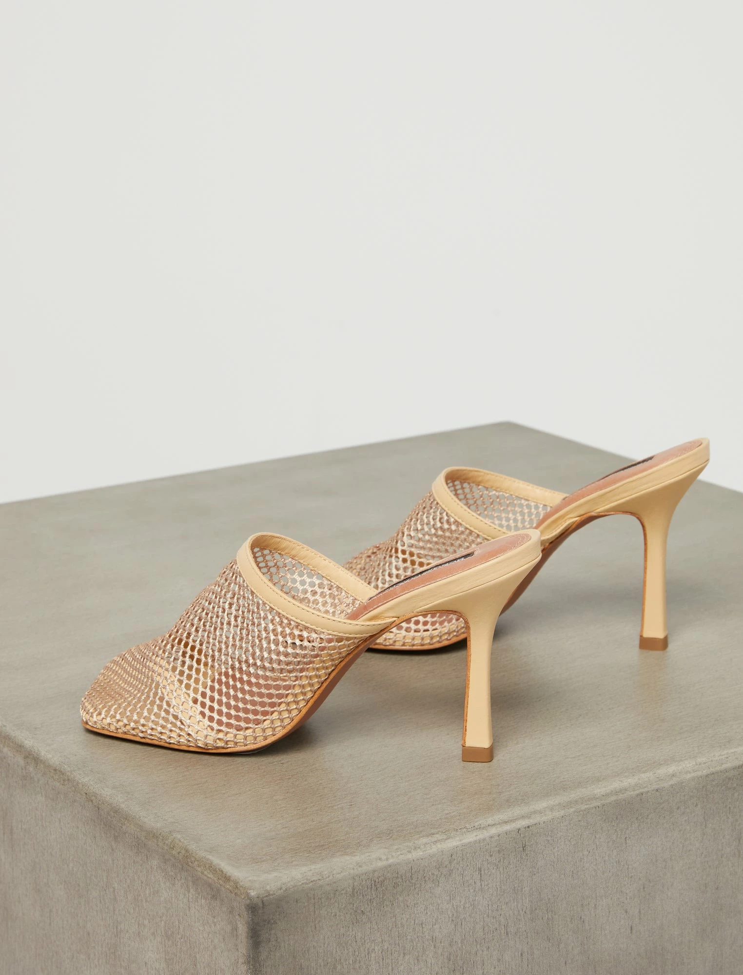 Edgy mule sandal with a modern square toe. Made from a striking mesh material for a showstopping look. Finished with a sleek stiletto heel.