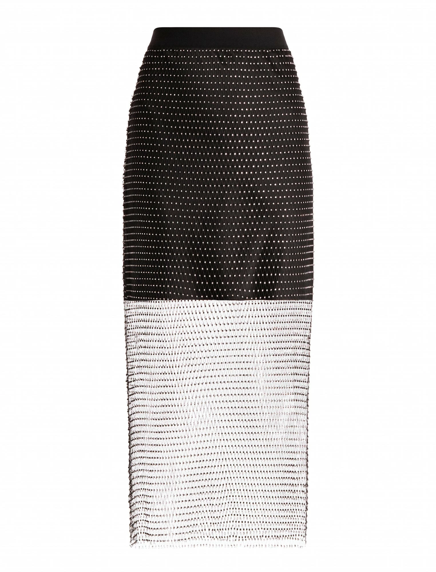Trend-setting skirt crafted from an ankle-length sparkle netting with a silky satin lining. Crafted with a high-waist and finished with a hidden back zip.